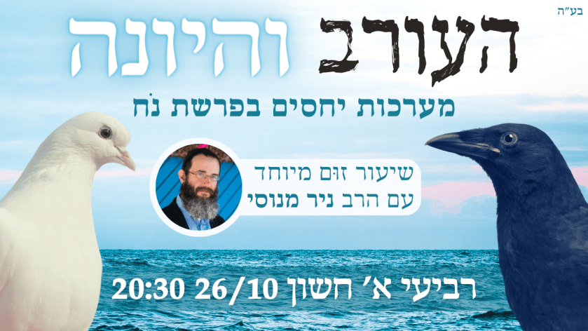 מוזמנים לשיעור "העורב והיונה: מערכות יחסים בפרשת נֹח" 25 באוקטובר 2022 ניר מנוסי בלתי מסווג כתיבת תגובה מוזמנים לשיעור זום מיוחד לכבוד פרשת נח שיתקיים ביום רביעי, א' חשוון (26/10) בשעה 20:30 לפרטים והרשמה לחצו כאן אהבתם? שתפו!שתף לשתף ב-WhatsApp (נפתח בחלון חדש) WhatsApp Tweet להדפיס (נפתח בחלון חדש) הדפס שלח קישור לחבר במייל (נפתח בחלון חדש) דואר אלקטרוני אהבתי טוען... קשור